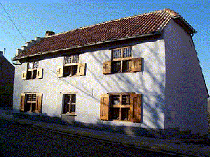 De funderingen en het onderste deel van de muren van deze dorpswoning bestaan uit grote, ruw in vorm gekapte blokken. Hogerop en ook aan de binnenzijde werden grote en kleine onbewerkte stenen door elkaar gebruikt. Er werd enkel leem als specie gebruikt. De gevel aan de straatzijde is voorzien van kraagstenen en aan de zuidzijde van een trapgevel. Het grondplan heeft als afmetingen 11x 6.5, hetgeen verrassend de gulden snede verhouding benadert. De muren hebben onderaan een dikte van iets meer dan 50 cm.